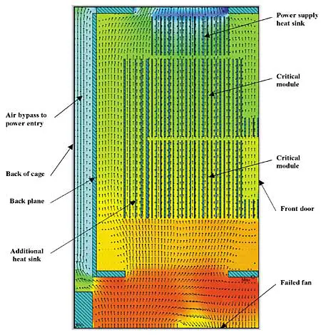To comply with the high quality requirements of telecommunications equipment, this particular product had to withstand an ambient temperature of 45�C, even when one of its six fans failed. (This particular product’s cooling system was designed to operate with N-1 fans. In other words, it normally operates with N fans. If one fails, the product must continue to run satisfactorily until the fan is replaced.)